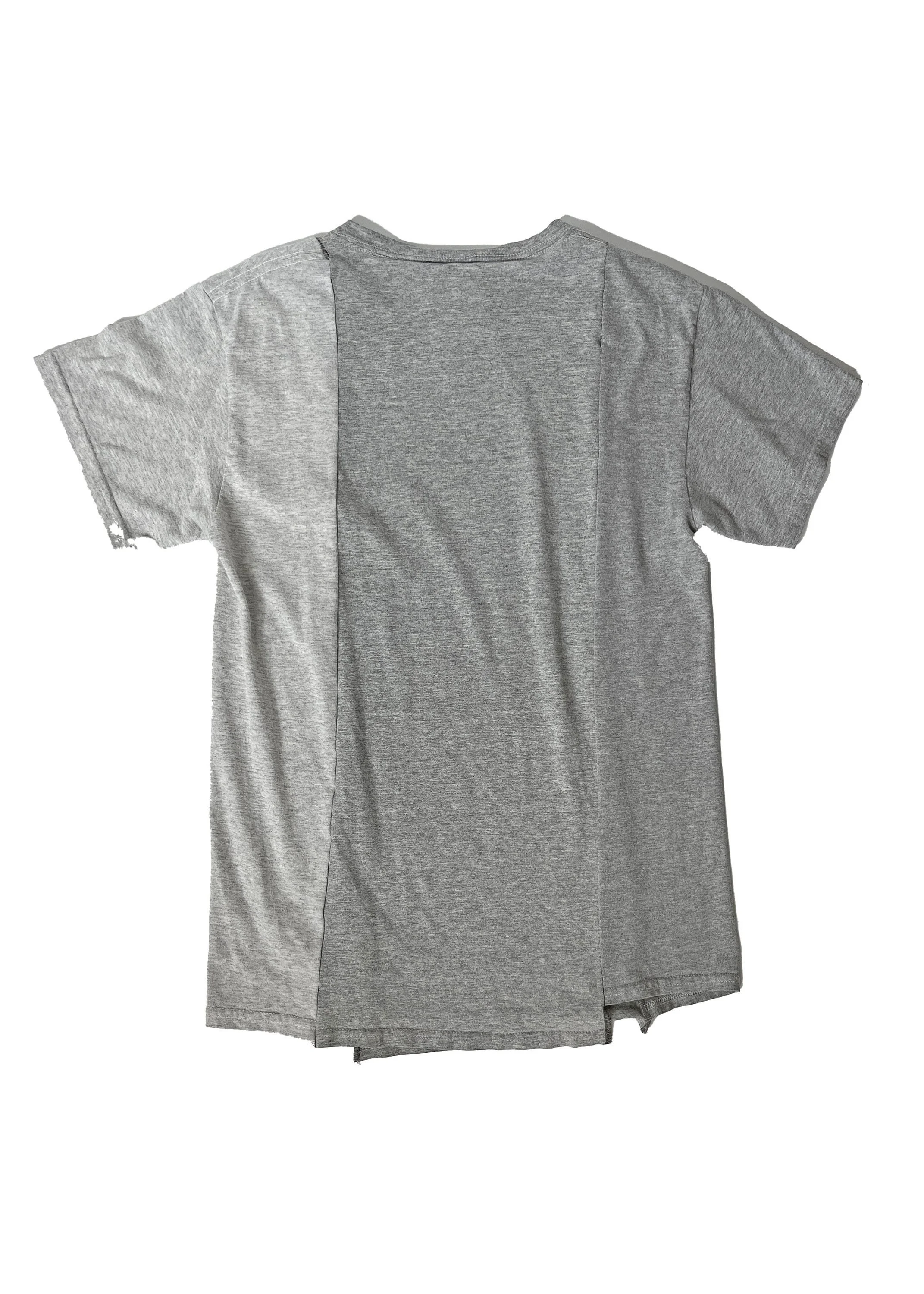 - Design: The reworked panel design creates a dynamic look with contrasting colors and textures. Due to its handmade nature, each t-shirt is a one-of-a-kind masterpiece